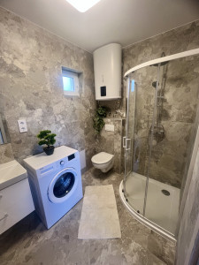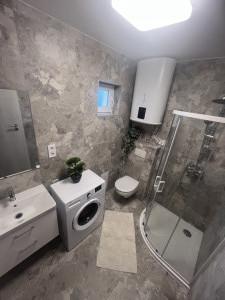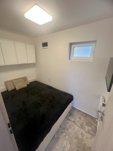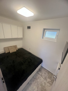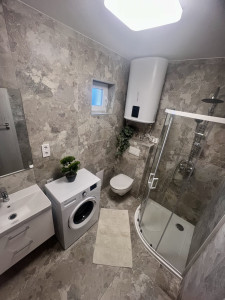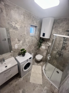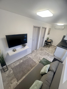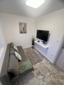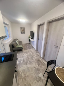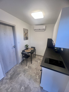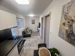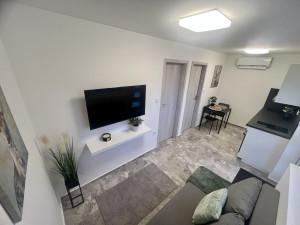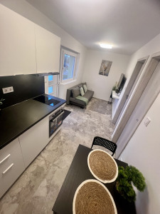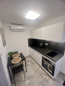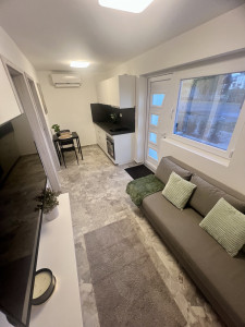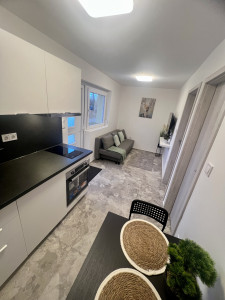 Átgondolt minimál stílusban kialakított: amerikai konyhás nappali, hálószoba, fürdőszoba WC-vel, valamint egy  terasz.